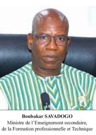Ministre de l’Enseignement Secondaire et de la Formation Professionnelle et Technique : Monsieur Boubakar SAVADOGO