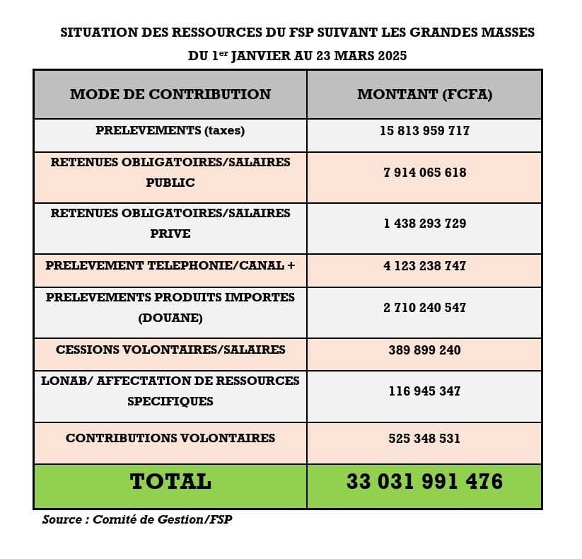 FSP : Plus de 33 milliards de FCFA mobilisés entre le 1er janvier et le 23 mars 2025 (Comité de Gestion/FSP)
