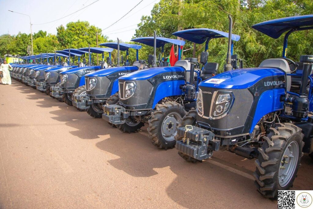 Composés de 1033 motos pour les agents de terrain, 485 motopompes, 1102 motoculteurs, 17 camions, 2 ateliers de forage, 4 moissonneuses batteuses, 935 cages flottantes, 36 véhicules, 608 tracteurs, 150 broyeuses, 10 unités de transformation, 31 851,5 tonnes de produits phytosanitaires, 66 952 895 doses de médicaments vétérinaires, 15 000 tonnes de semences végétales, 70 000 tonnes d’engrais minéraux, 14 631 tonnes de fumure organique, 1 580 tonnes d’aliments de poisson, 11 169 tonnes d’aliments de bétail, cette importante acquisition, selon le ministre en charge de l’agriculture, Ismaël Sombié, vient renforcer les capacités opérationnelles des brigades de mécanisation agricole reparties sur l’ensemble des communes de notre pays.