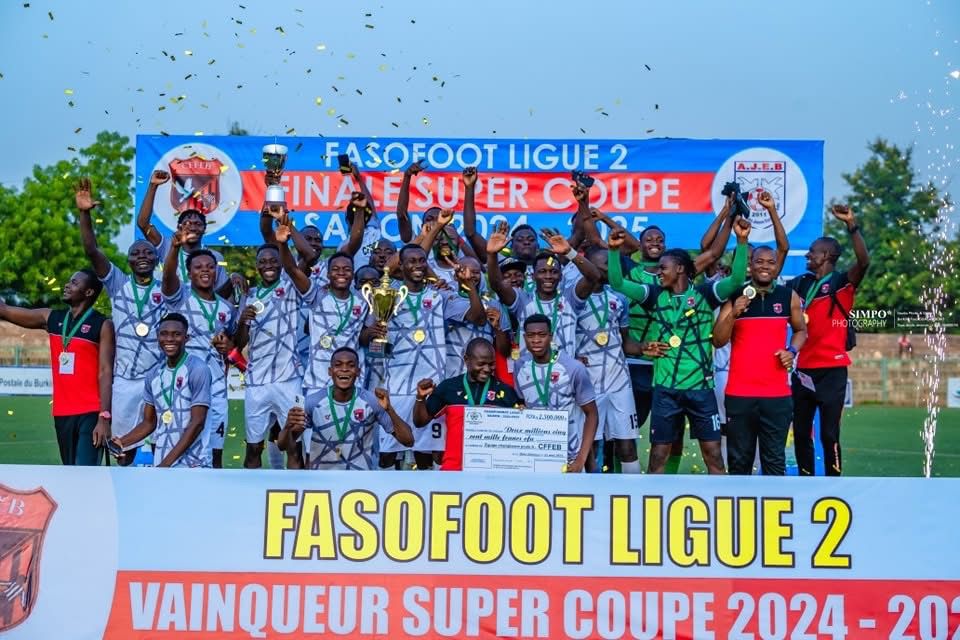 Le Centre de Formation de Football Espoir du Burkina (CFFEB) a remporté, ce mercredi 21 mai, le premier trophée de la Super Coupe de la Ligue 2. Le champion de la Poule A a battu le champion de la Poule B, l’ Association des Jeunes Espoirs de Bobo Dioulasso (AJEB), sur le score de 1-0 au stade Wobi de Bobo-Dioulasso.