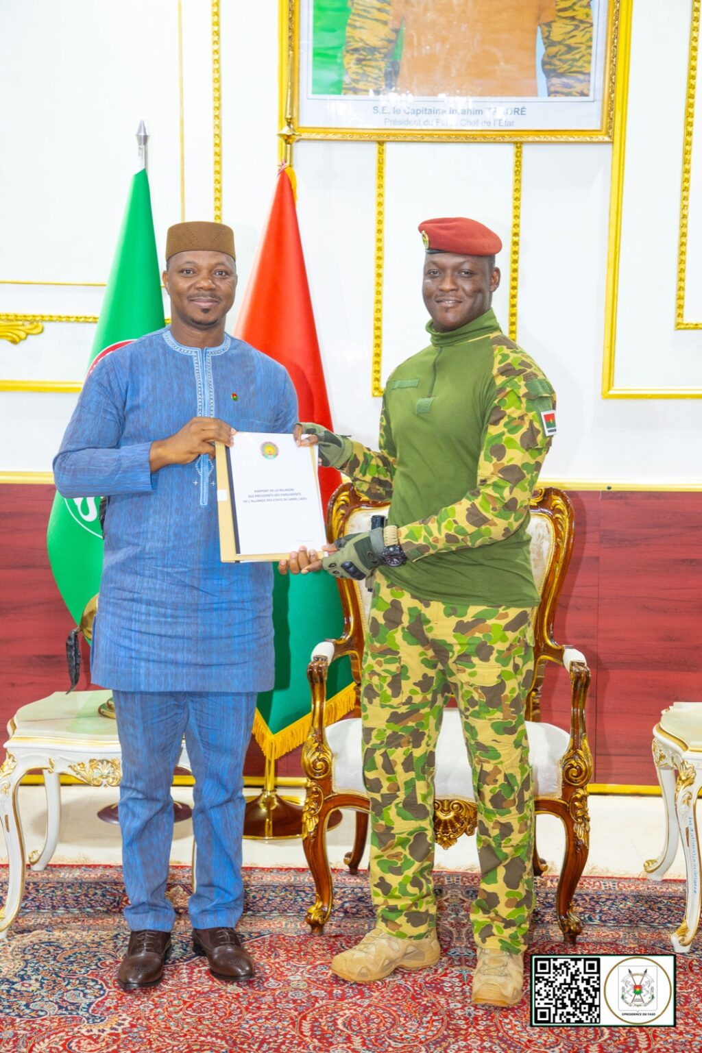 « Nous venons de transmettre l’avant-projet à Son Excellence, le Camarade Capitaine Ibrahim TRAORÉ, afin qu’il le transmette à ses homologues pour que ce texte puisse être examiné par nos plus hautes autorités de l’espace AES et être adopté pour une mise en place rapide des sessions du parlement confédéral », explique le Président du parlement burkinabè à l’issue de l’audience avec le Chef de l’État.