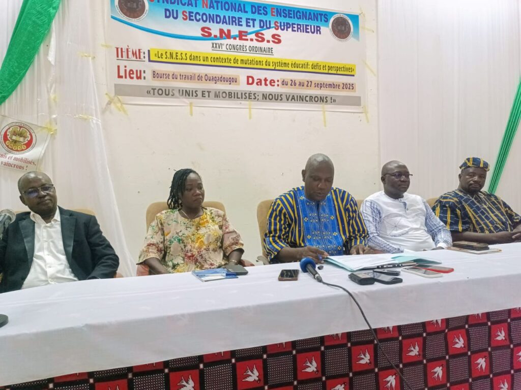Le Syndicat National des Enseignants du Secondaire et du Supérieur (SNESS) a ouvert ce vendredi 26 septembre 2025, à Ouagadougou, son 26ᵉ congrès ordinaire. Placée sous le thème « Le SNESS dans un contexte de mutations du système éducatif : défis et perspectives », la rencontre réunit durant deux jours les délégués syndicaux, les partenaires de l’administration et les organisations sœurs.