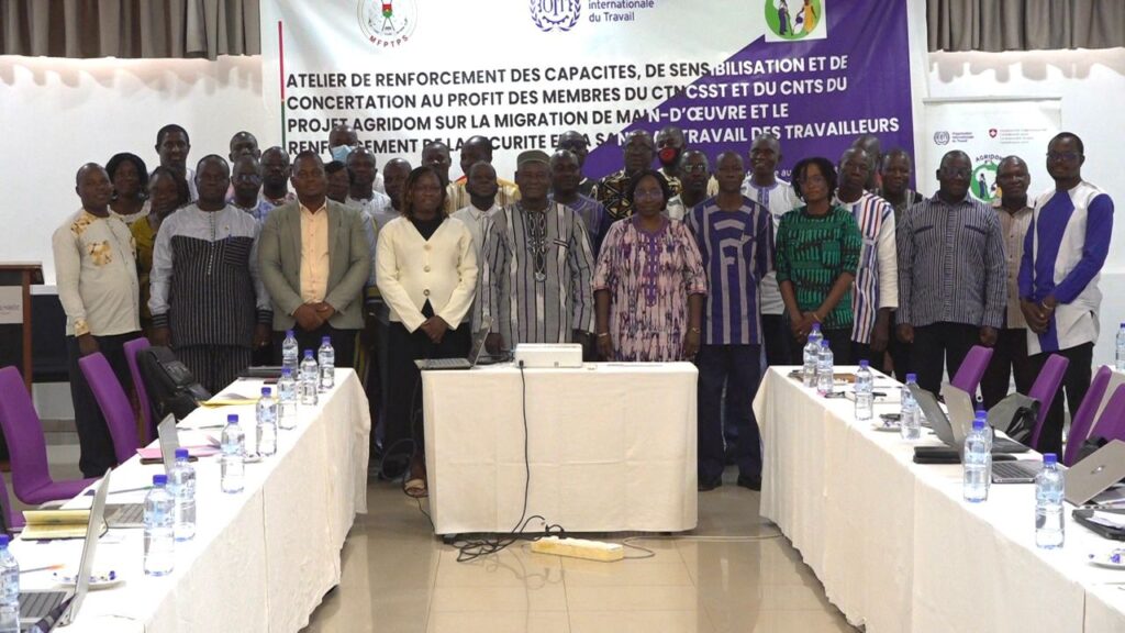 Le ministère de la Fonction publique, du Travail et de la Protection sociale a lancé, ce 29 septembre 2025 à Ouagadougou, un atelier de renforcement des capacités, de sensibilisation et de concertation consacré aux enjeux de la migration de main-d’œuvre. L’objectif est d’outiller les membres du Comité technique national consultatif de sécurité et santé au travail (CTNCSST) ainsi que du Comité national tripartite de suivi du projet AGRIDOM (CNTS), afin qu’ils jouent pleinement leur rôle dans le cadre de la protection des travailleurs migrants, notamment en matière de sécurité et de santé au travail.