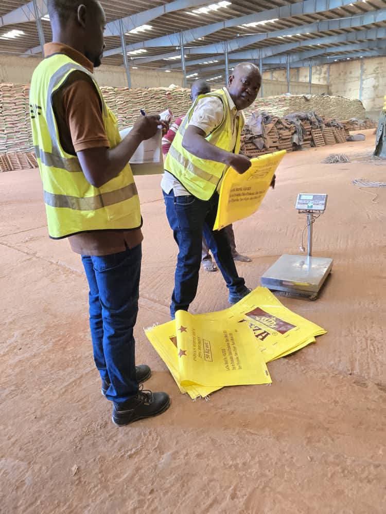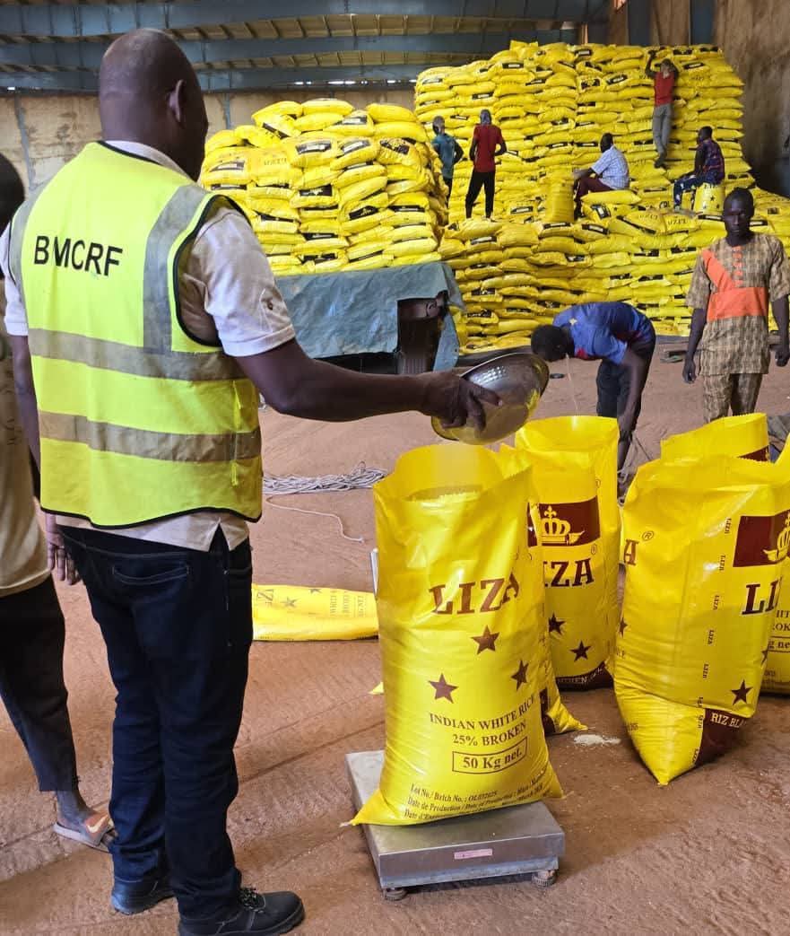 (Ouagadougou 13 novembre 2025) Les équipes de la Brigade Mobile de Contrôle Économique et de Répression des Fraudes (BMCRF) ont effectué un constat de démarrage du reconditionnement de riz dans deux sociétés situées à Tanghin et à Wayalghin.