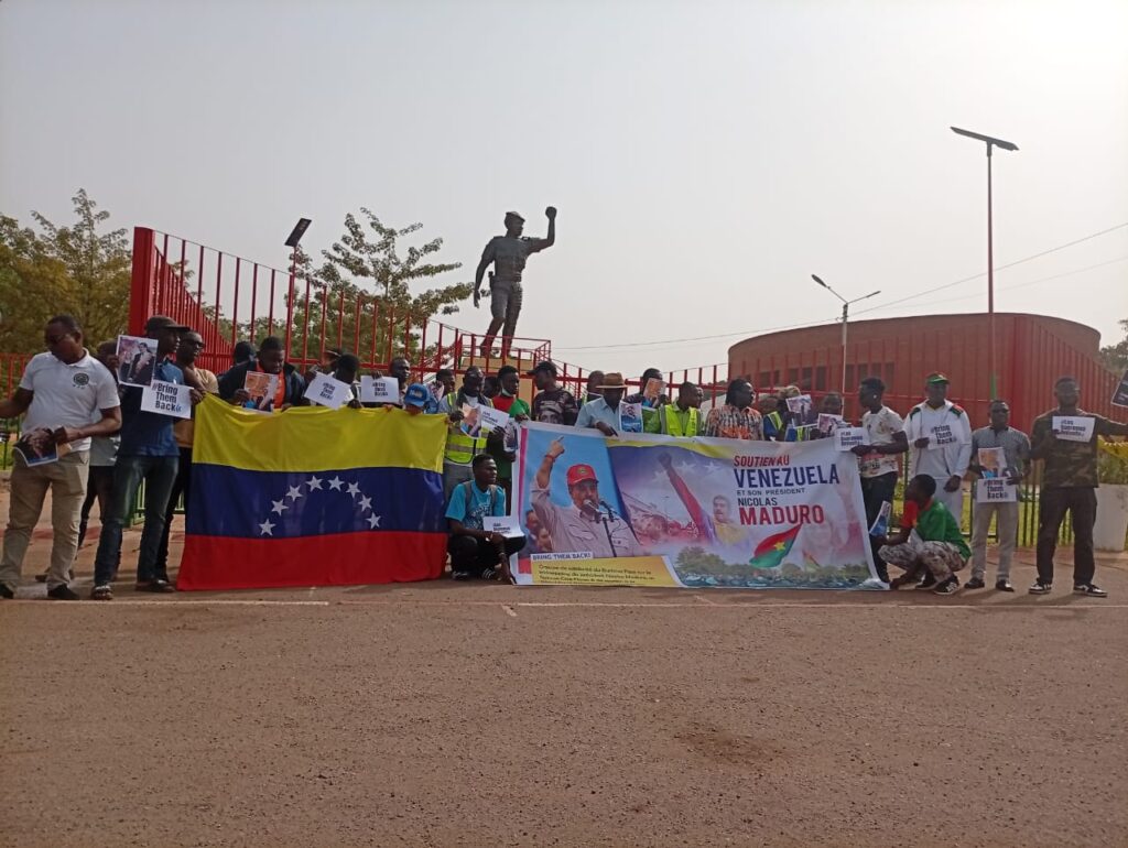 Le Groupe de Solidarité du Burkina Faso a manifesté, samedi 17 janvier 2026, au mémorial Thomas Sankara à Ouagadougou pour dénoncer le kidnapping du président vénézuélien Nicolás Maduro et de son épouse Cilia Flores. Cette mobilisation vise à exprimer un soutien au peuple vénézuélien et à condamner les forces fascistes états-uniennes et leurs alliés, accusés de menacer la paix et la souveraineté du Venezuela.