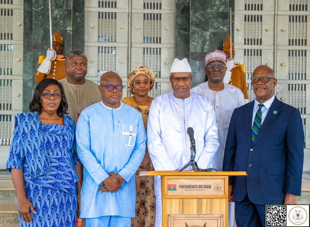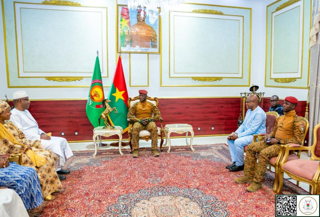 Le Président du Faso, Chef de l’État, le Capitaine Ibrahim Traoré, a reçu en audience, ce jeudi 26 mars 2026, les ministres de la Santé des pays invités au 1er Forum national sur le Financement de la Santé du Burkina (FONAFIS). La délégation, composée des ministres de la Santé de la Sierra Leone, de la Gambie, du Niger, du Tchad, du Mali, du Sénégal et du Burkina Faso, a été conduite par le Ministre burkinabè de la Santé, Dr Robert Lucien Jean-Claude Kargougou. L’information est donnée par la Direction de communication de la Présidence du Faso.