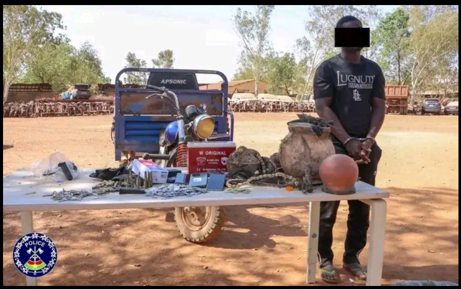 Butin saisi lors de l’arrestation : Un pistolet automatique, des munitions, un tricycle, des canaris (fétiches), des clés, et même des documents de terrains hors lotissement.
